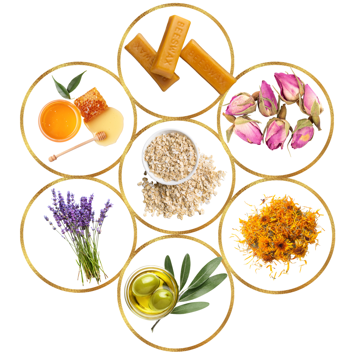 honey, ginger, lavender, oatmeal, rose, beeswax, calendula, and olive oil